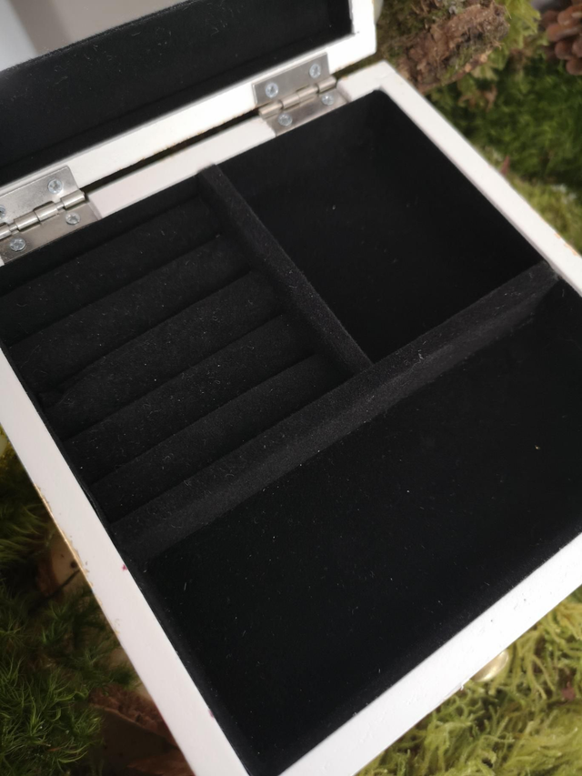 L’intérieur, doublé de velours noir, un tiroir inférieur complète l’espace de rangement pour vos trésors, tout en gardant l’ensemble élégant et ordonné.