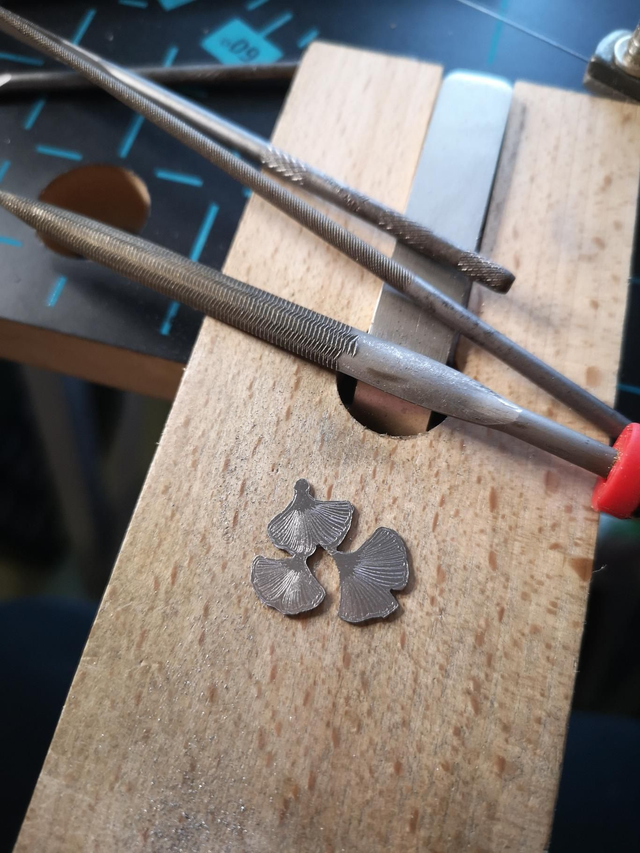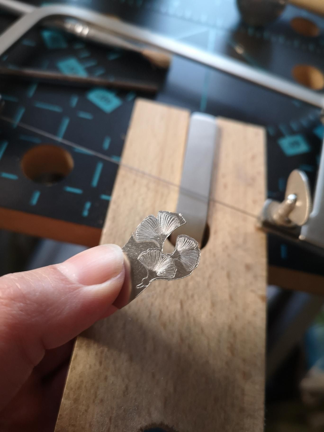 Après la découpe, chaque élément est soigneusement limé puis poli, afin d’obtenir des contours doux et une finition agréable au porter.