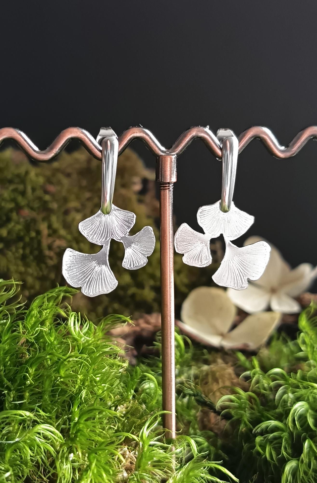 Boucles d'oreilles - puces - ginkgo - acier argenté - La&Titia