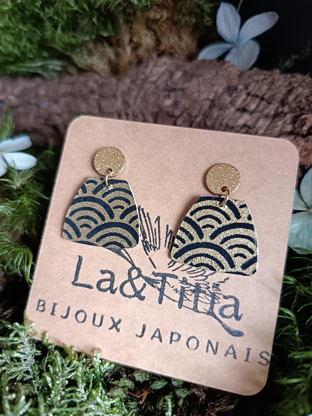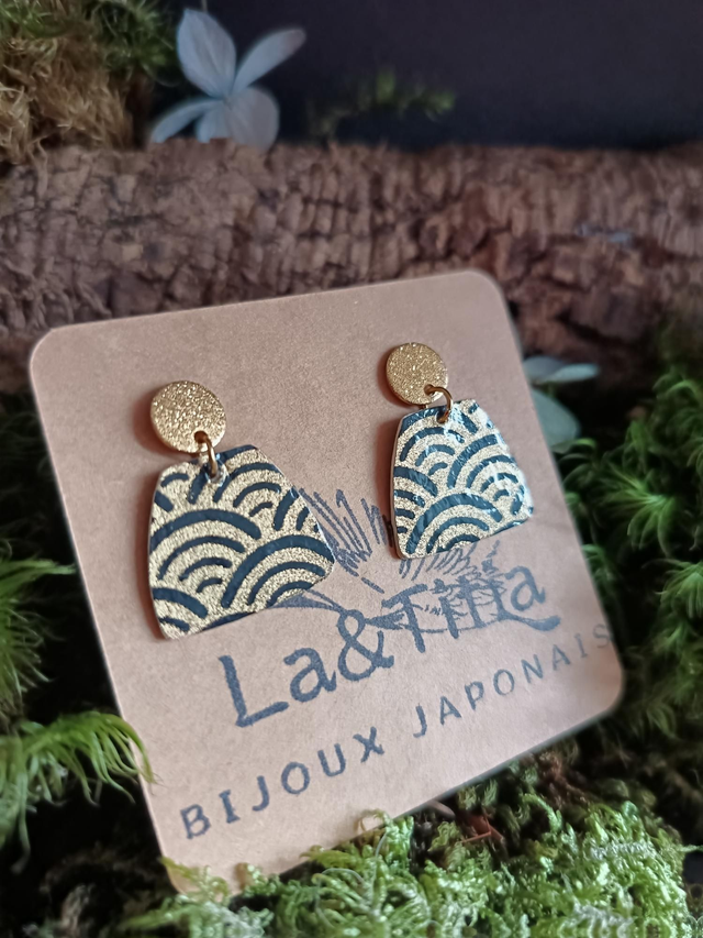 Boucles d'oreilles - puces - papier washi - vague - Seigaiha - La&Titia