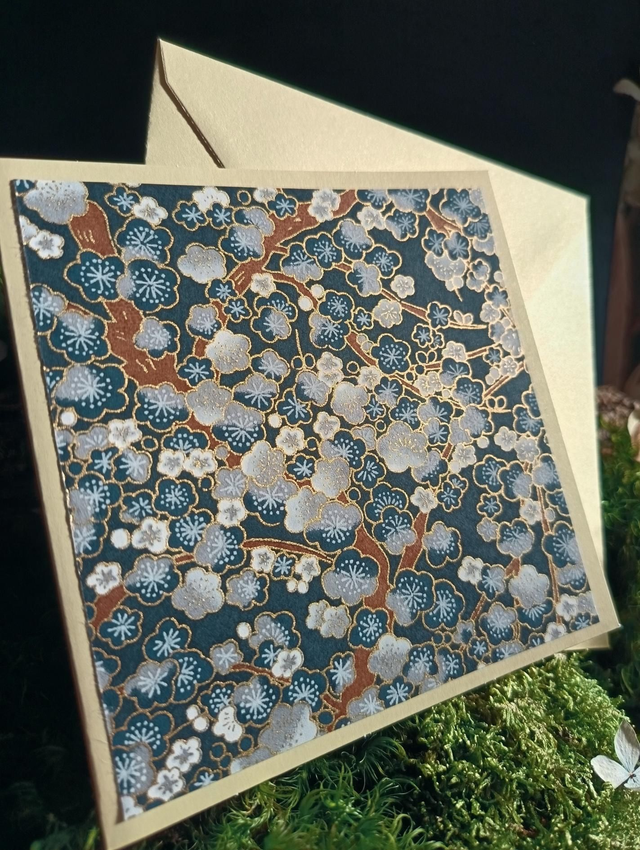 Carte - enveloppe - papier washi - fleurs de prunier - bleu - La&Titia