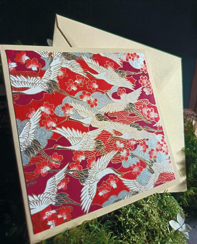 Carte - enveloppe - papier washi - grues - oiseaux - La&Titia