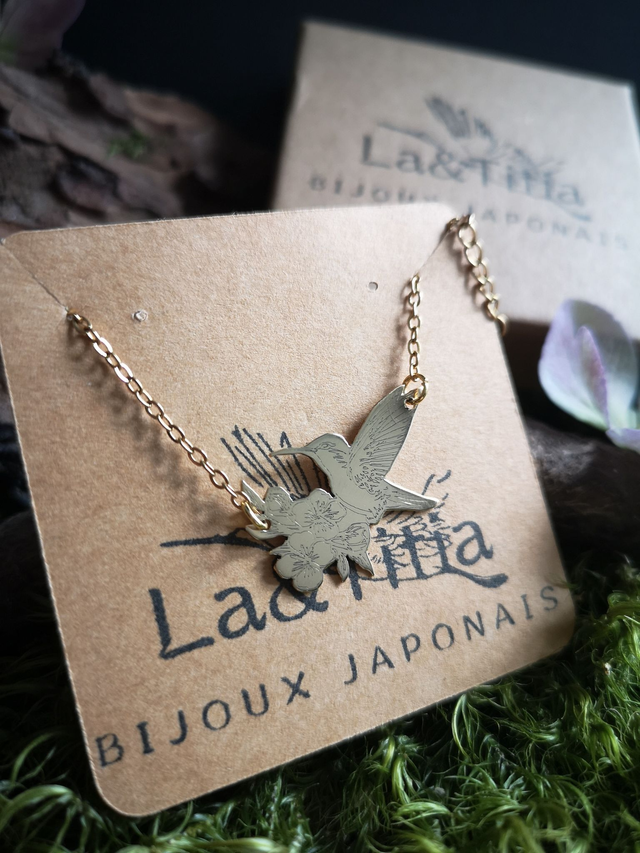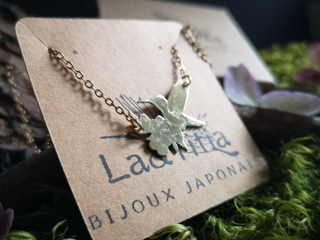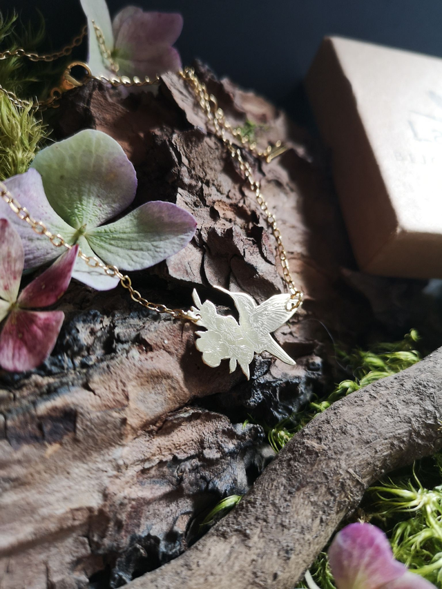 Précommande : Collier - laiton - colibri - fleurs - chaîne - oiseau - pièce unique - La&Titia
